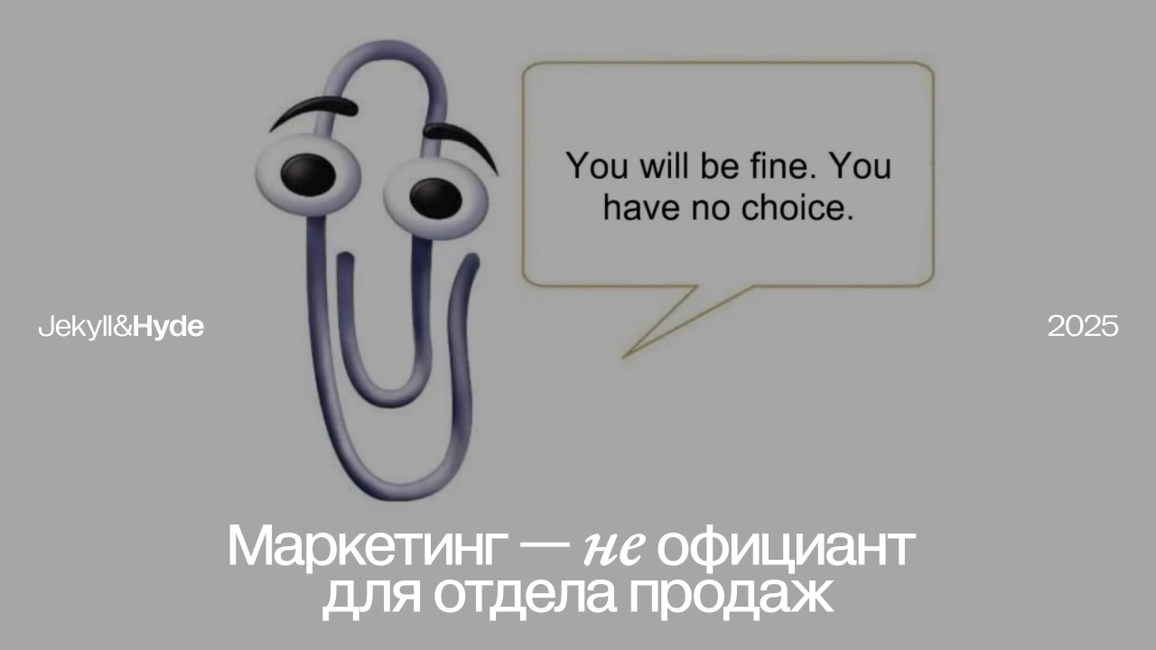 Маркетинг — не официант, который приносит «теплых клиентов» по звонку из отдела продаж. И не дизайнер, который делает презентации по просьбе менеджеров.